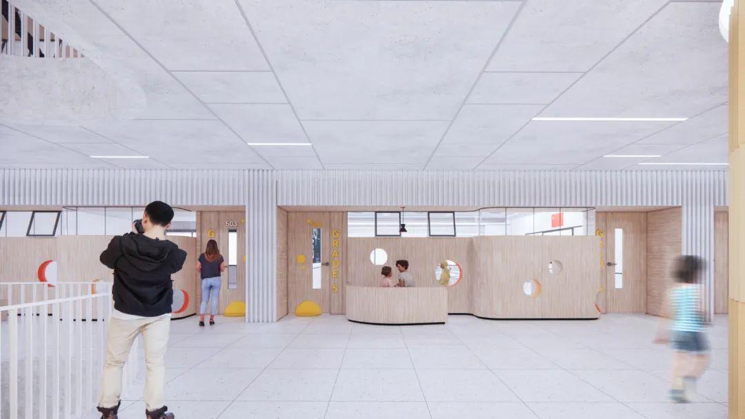此项目建筑内饰设计以孩子的视野、童真的角度为主要导向,以现代风为主,辅以鲜艳的色彩和灵动的图案,激发校园活力。