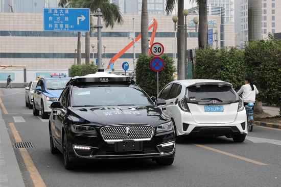 ▲自动驾驶车辆行驶在道路上。