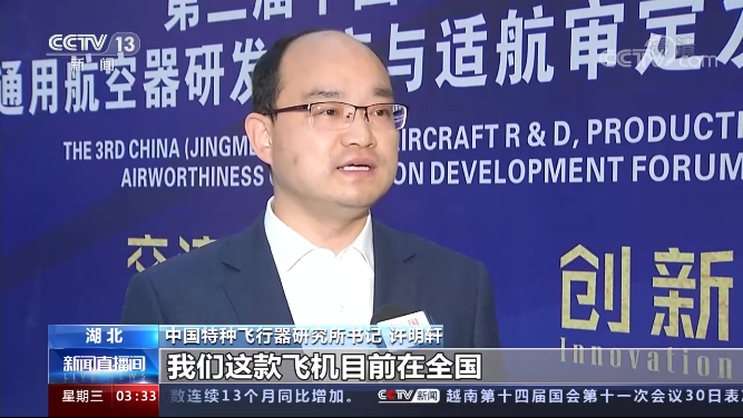 中国特种飞行器研究所书记 许明轩:我们这款飞机目前在全国已经累计交付140多艘,它的最大特点是在海拔3500米以下能满足农林作业和航空旅游的用户要求。目前,我们所研制的AS系列、AG系列等系列通用航空产品,已经成为了我所的支柱产业。