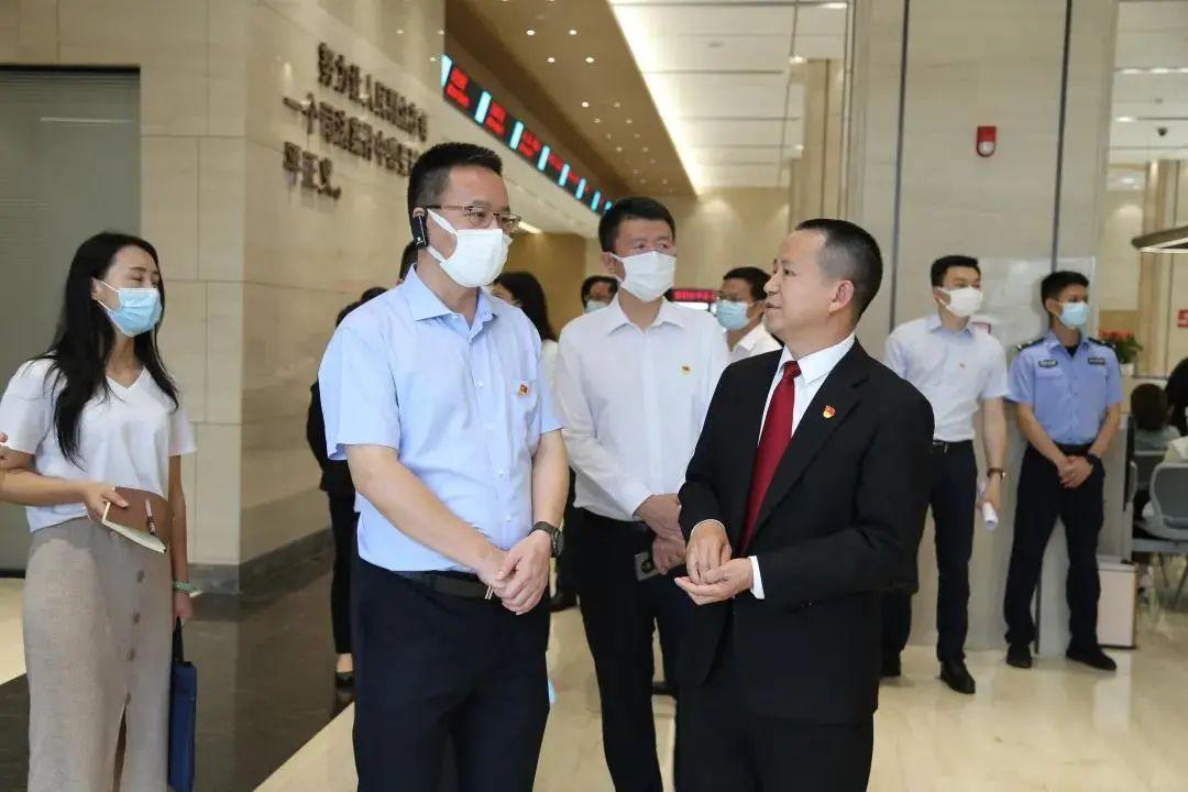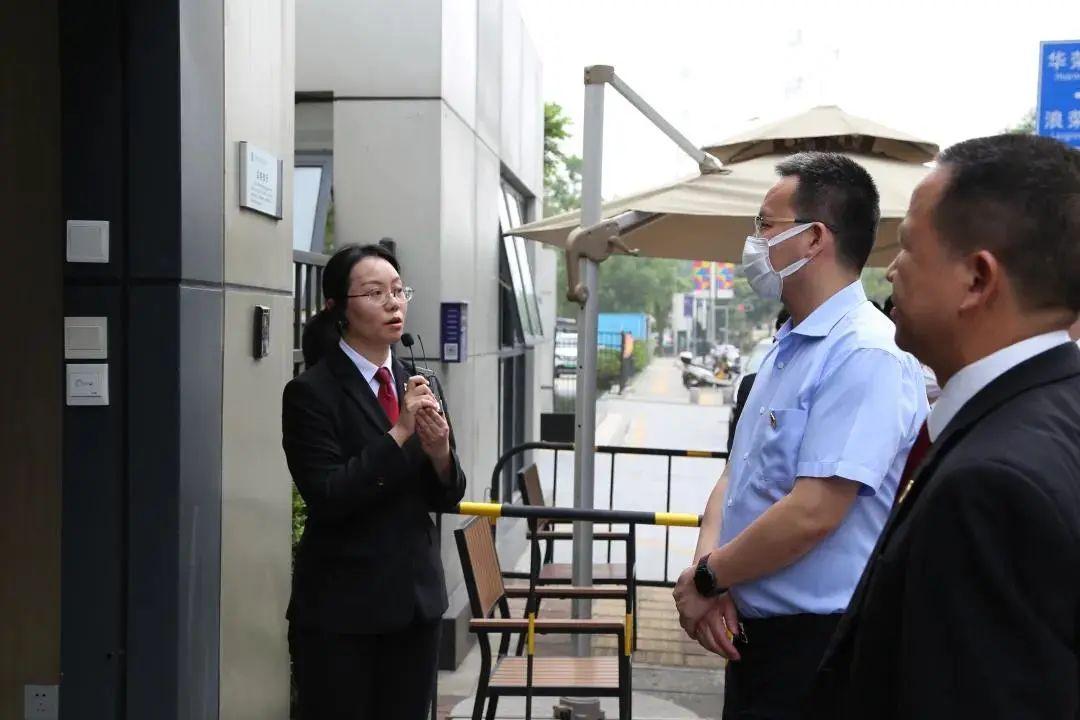 在区法院,王卫一行先后到24小时自助诉讼服务驿站、诉讼服务中心、审判法庭、法治交流中心等场所,与法官深入交流,详细了解了立案、诉讼、调解等情况。