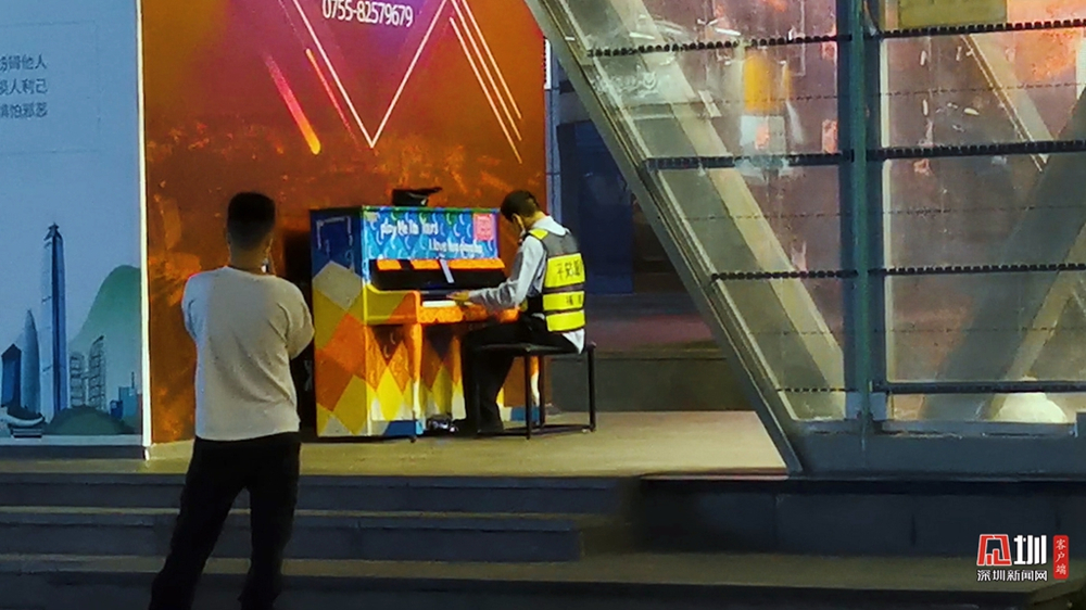 见圳客户端·深圳新闻网2021年4月8日讯(记者 张艺龄)时间是晚上十点钟,谢子贺正坐在华强北街头一架蓝黄色钢琴前忘我地弹着柴可夫斯基的舞曲——《四小天鹅》,此时,号称“中国电子第一街”的华强北商业区,已经没有太多行人。