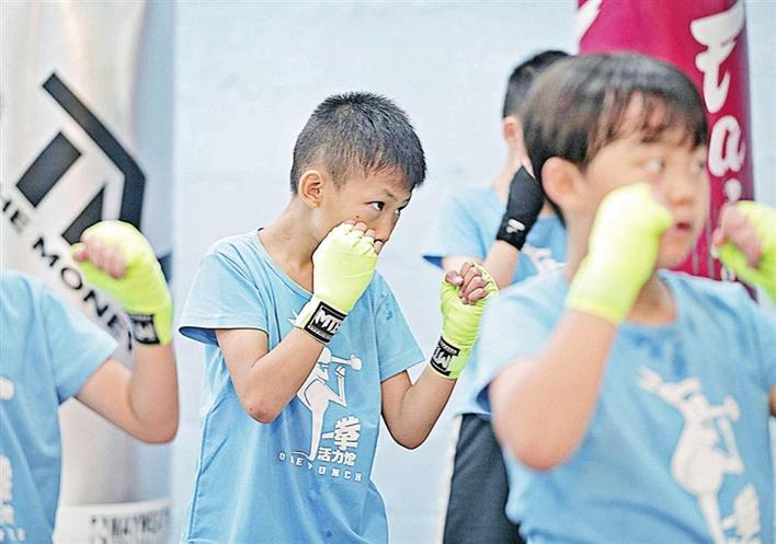 在拳击公益培训课堂,孩子们学习拳击,磨炼意志。