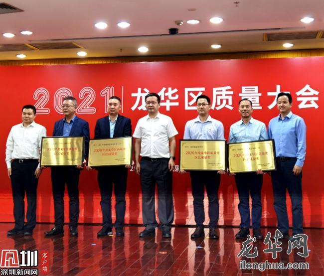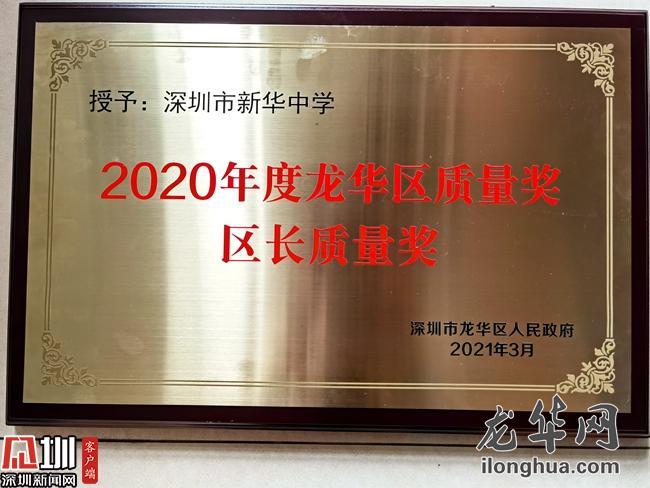 会上,参会领导为4家获得龙华区区长质量奖以及6家龙华区质量进步奖的单位进行颁奖。新华中学成为龙华区首个获区长质量奖的教育单位,上台接受表彰。