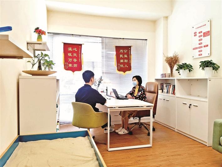 “心灵氧吧”的心理咨询师在为市民做心理辅导。