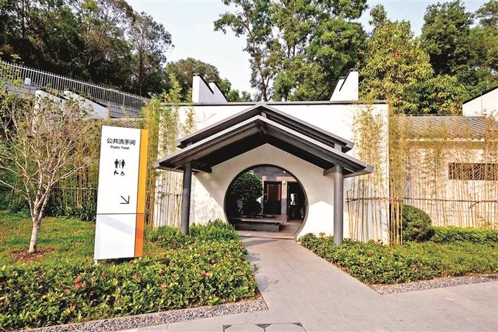 畅游公园绿道,远远看见树荫下一栋古色古香的建筑,墙边的竹林郁郁葱葱,若不是看见“公共洗手间”的指示牌,想必很难将这栋美丽建筑与公厕联系在一起。
