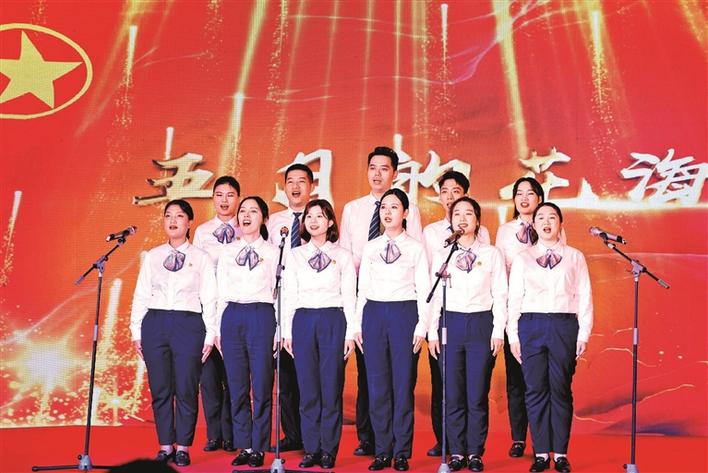 由区政务服务数据管理局工作人员自编自导自演的节目小合唱《五月的花海》在表彰大会上唱响。