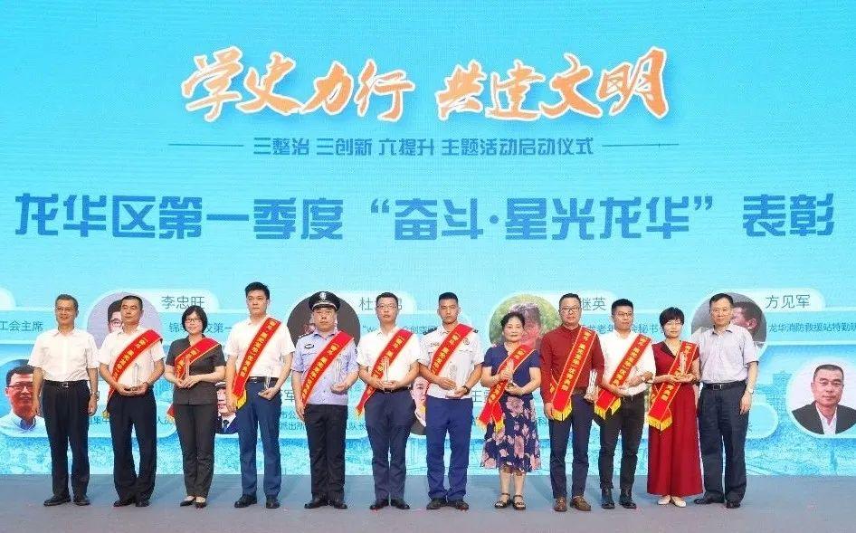 为发扬人文风尚,弘扬奋斗精神,现场对陈鹏、李忠旺、杜培锦等10名“奋斗·星光龙华”优秀典型进行表彰。与会领导陈庆澜、黄启键为获奖者颁奖,鼓励他们再接再厉,秉承奋斗精神,在各自的岗位上实现新作为。现场以热烈的掌声向来自各行各业“奋斗·星光龙华”获奖者表达敬意。