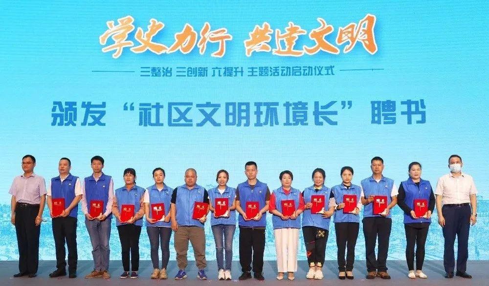 区文明办和民治街道为12位社区文明“环境长”颁发聘书。民治街道发动社区工作人员、文促会会员及社区热心居民参与文明创建,在每个社区选聘社区文明“环境长”,每周开展“用脚步丈量文明、用行动践行文明”活动,创新市民参与文明创建的形式。