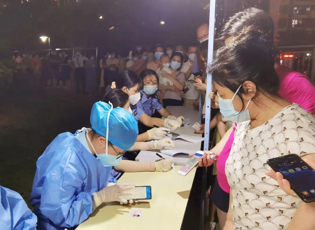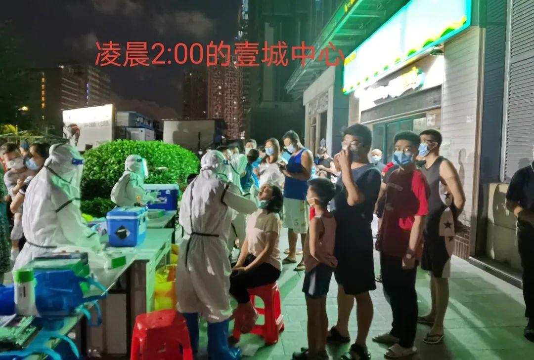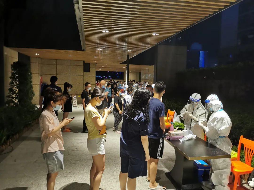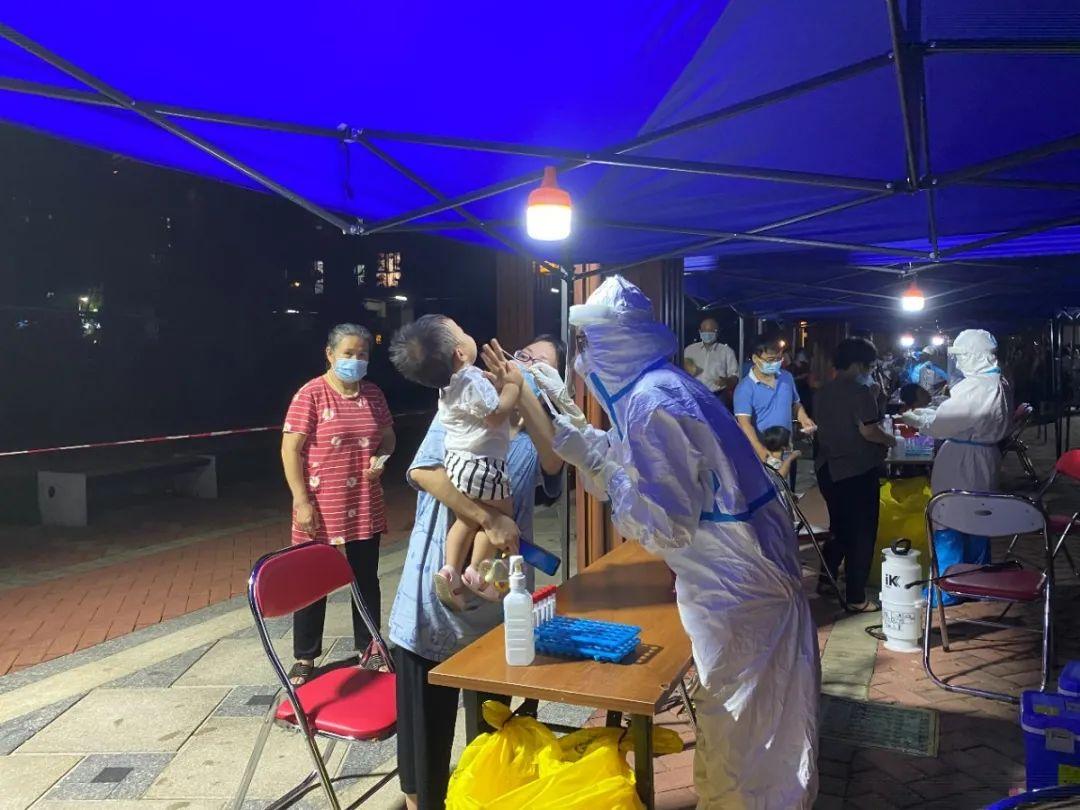 随后,院领导班子带领 300 余名医护人员,分别在福城、观湖、观澜三个街道11个居民点进行核酸采样。采样现场,在街道、社区工作人员的有力组织下,居民文明有序排队进行核酸采样。采样工作一直持续到凌晨2点,共完成6209人次核酸采样。