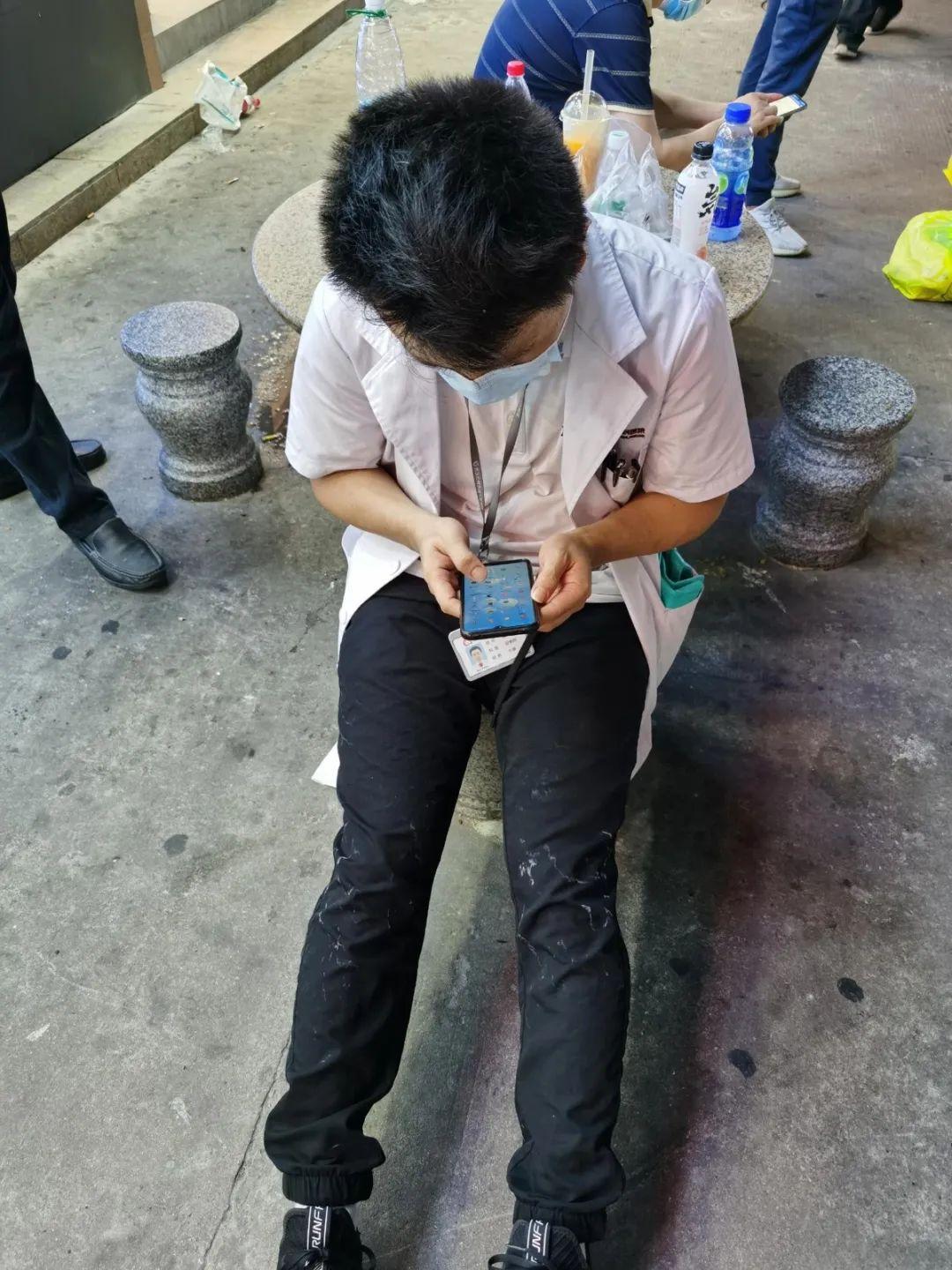 5月27日晚上8点第二批采样队又出发了。不少医护人员在完成白天的工作后来不及回家休息又继续加入到了采样队伍中。当天的采样工作一直持续到第二天凌晨4点,有些医护人员直接倒在花坛边上睡着了。