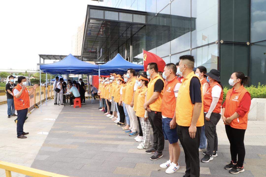 前方后方有序对接保障,172名党员志愿者换上橙色马甲迅速到岗就位,区直机关党组织迅速完成“一对一”挂点支援任务。