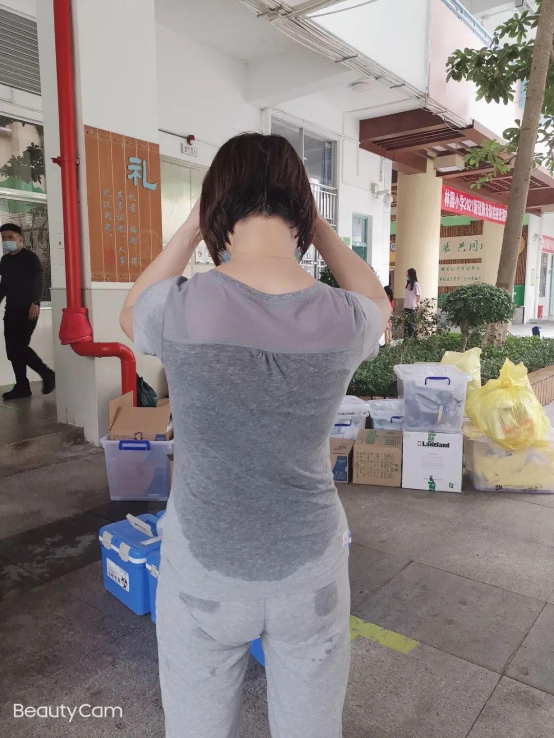 “脱下防护服后直接能倒出水来,里三层外三层都湿透了,我感觉有些脱水,一口气喝了两瓶矿泉水。”一名采样人员说。