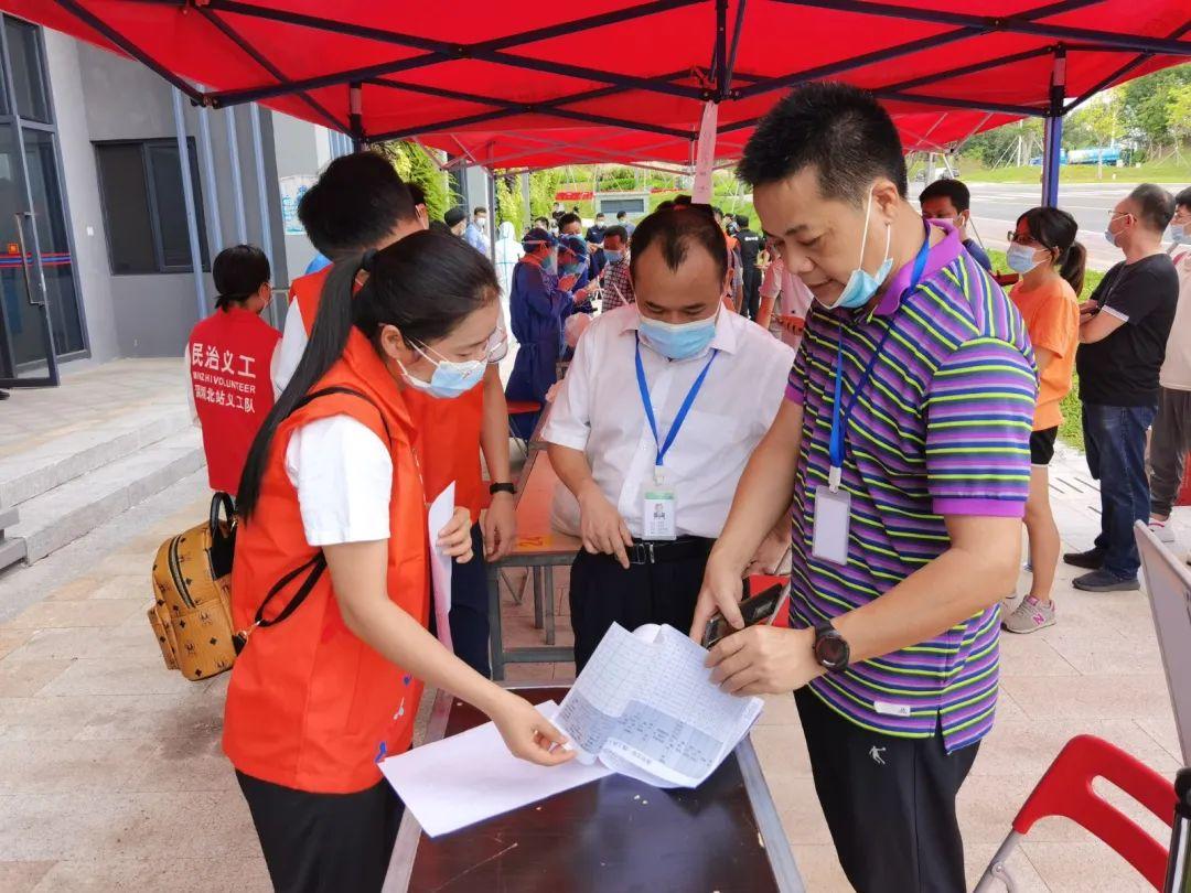 另外,为了完成重点人员核酸检测任务,龙华区统筹设置了北站中心公园、龙华文化艺术中心、民法公园等三个临时集中检测点,面对大量集中检测人群,区直机关党员干部放弃周末休息时间,33个党组织132名党员志愿者迅速集结赶赴核酸检测点。指导群众扫码、对“三类人员”分流登记,维护检测秩序,宣传防控政策。