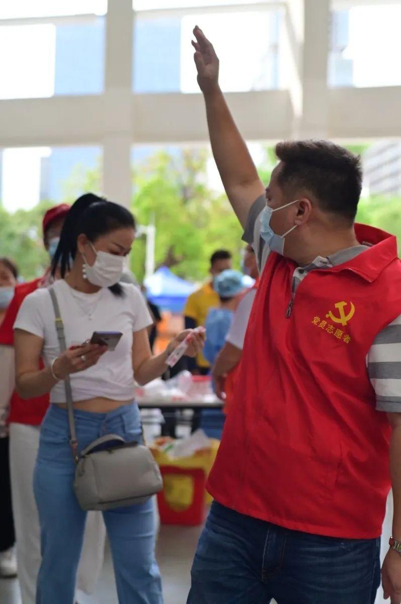 龙华投控集团党员志愿者利用周末双休时间投入到一线疫情防控工作中,有序高效完成现场人员分类、检测指引、政策解释、秩序维护等工作,有效缓解了一线人手不足问题,充分展现了党员志愿者勇于担当、无私奉献的先锋模范作用。