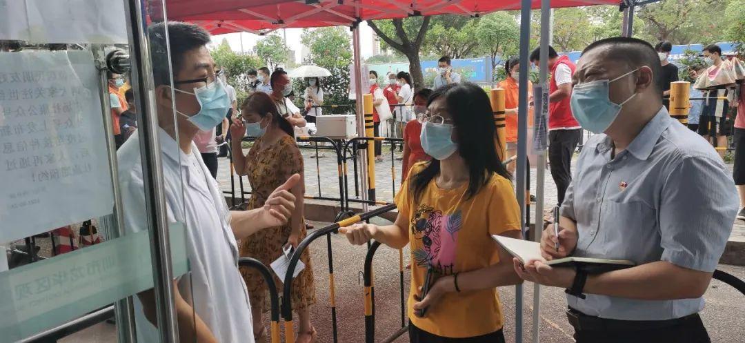 区纪委常委、区委巡察办主任吴金明同志率队到民治街道检查疫情防控工作,先后到龙塘、大岭、北站社区,对新冠病毒疫苗接种点、卡口扫码测温等情况进行检查,并随机进入沿街药店和私人诊所检查购药登记工作台账,详细了解发热病人排查跟踪工作机制。