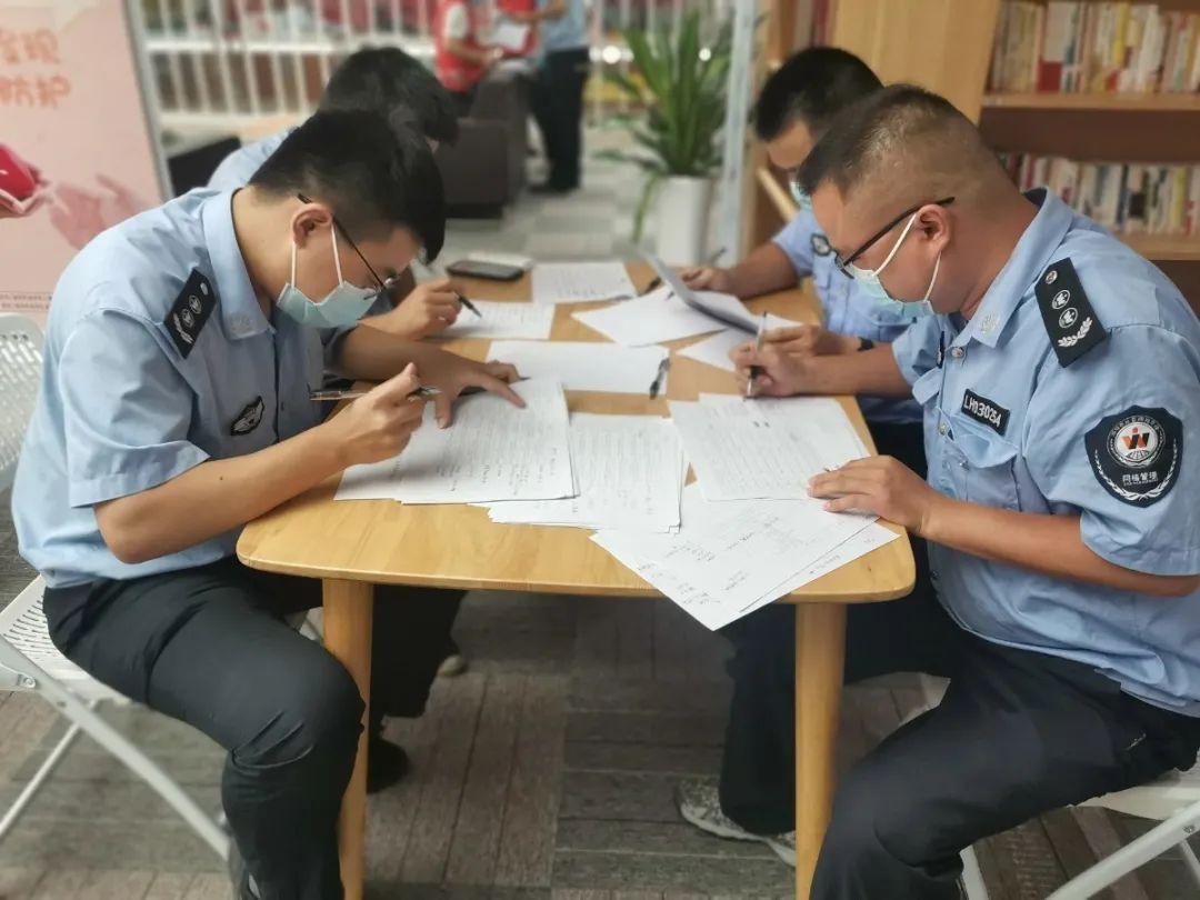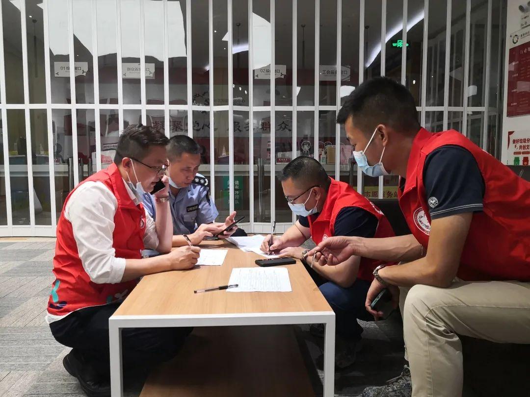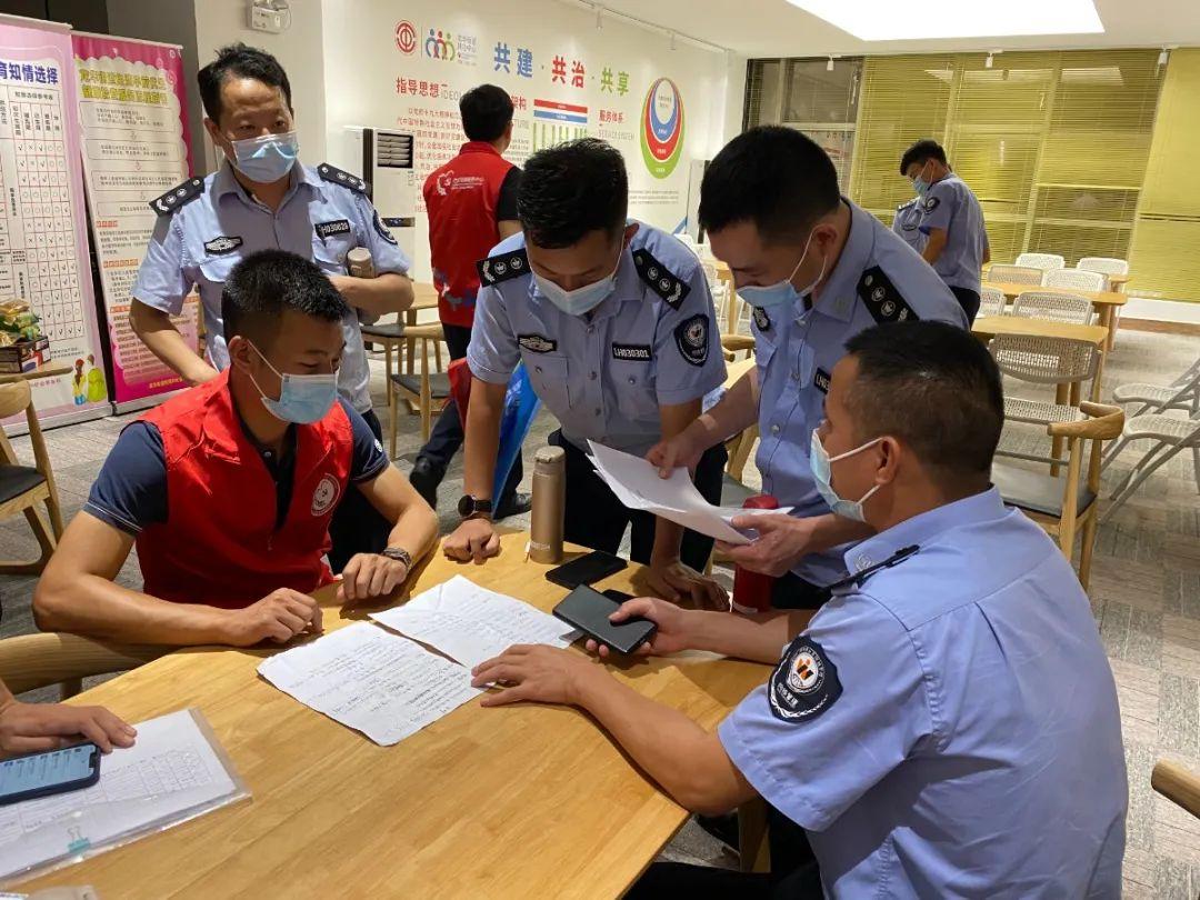 上芬社区的工作者们正在进行人员信息落地排查。
