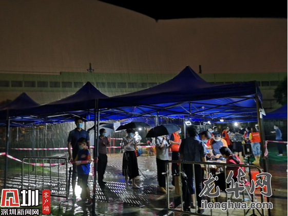 6月1日晚,本该在家陪小孩过儿童节,龙华妇幼的医护人员、龙平社区工作者和志愿者却在暴雨中为居民做核酸检测,搭建的帐篷都抵挡不了大雨滂沱,大家全身湿透、喉咙喊得沙哑却还是有条不紊的工作着,最终4个多小时完成了3千余人第三次核酸检测工作。