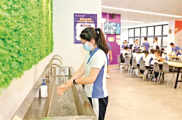 高三学生用餐前自觉进行手部清洁。