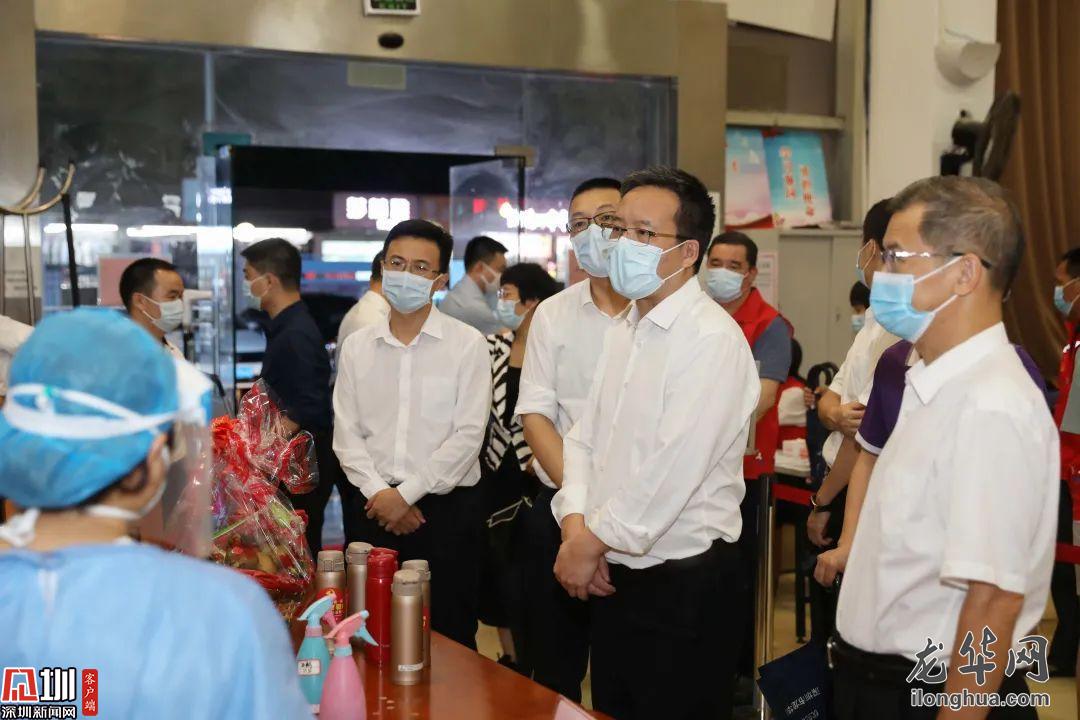 深圳新闻网讯 (记者 陶倩) 6月1日晚,龙华区委书记王卫一行冒雨深入到龙华街道检查疫情防控工作,详细了解目前疫情防控专项数据排查情况,并看望社区一线工作人员。区领导黄启键、韩荡参加检查。