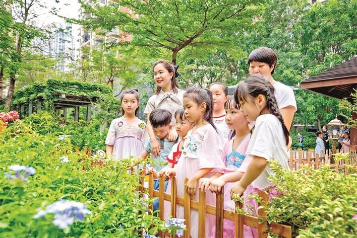 “2021年花园遛遛节”直播中,孩子们在沁芳园参与活动。
