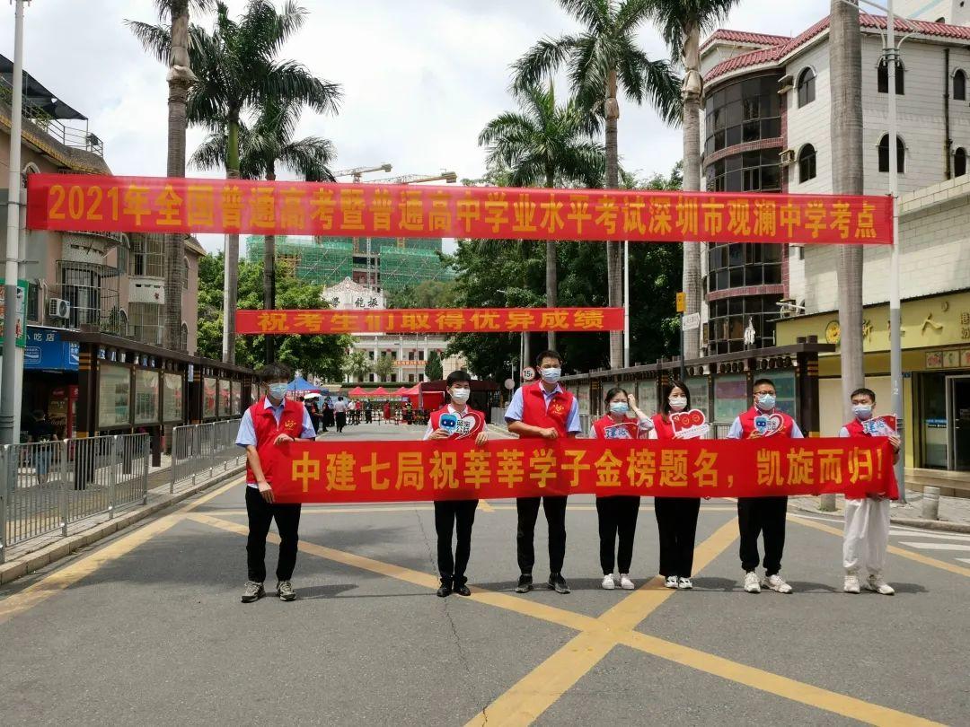 来自龙华区建筑工务署和中建七局的志愿服务队今年都是第二次来参加高考服务,他们为考生准备了矿泉水、考试文具和口罩。今年,建筑工务署共派出10名党员和团员志愿者全程为考生提供服务,中建七局也派出8名志愿者参与服务。