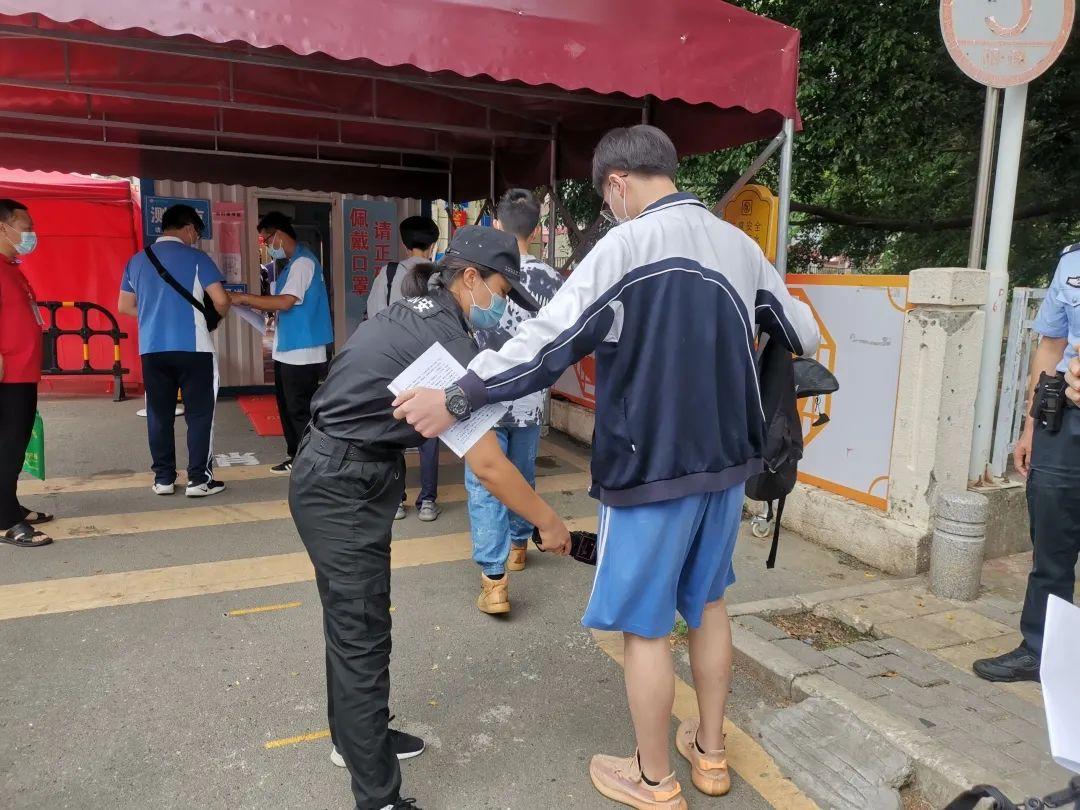 在观澜中学考点,公安民警在考点巡逻。