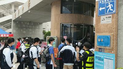 考生排队进入龙华中学考点。