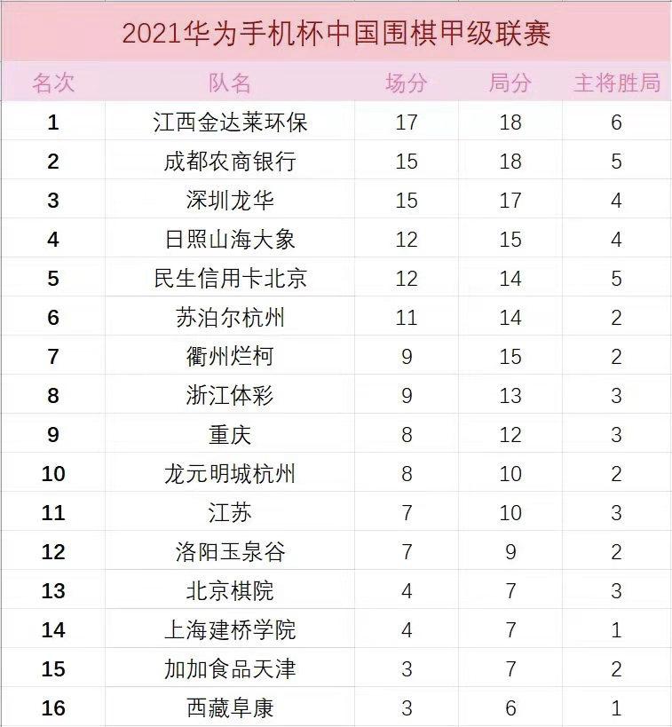 上届冠军江西金达莱环保队3比1击败北京棋院队,豪取6连胜,成为本赛季目前唯一一支保持全胜的队,并登上积分榜首位。