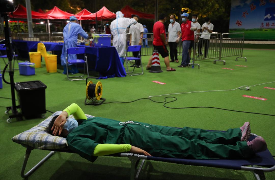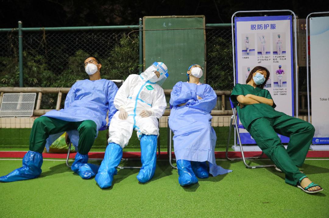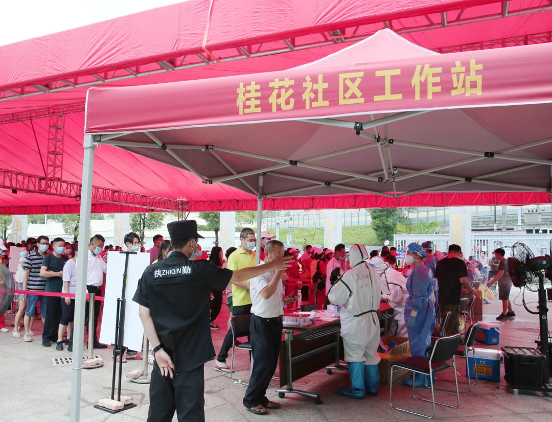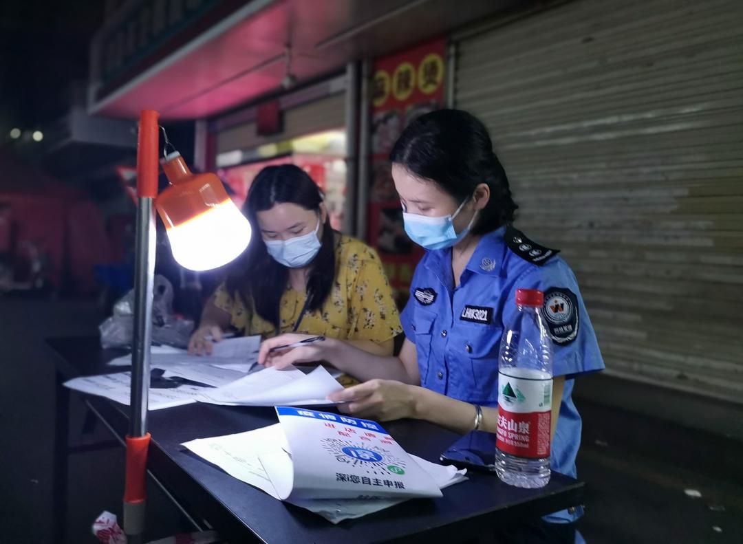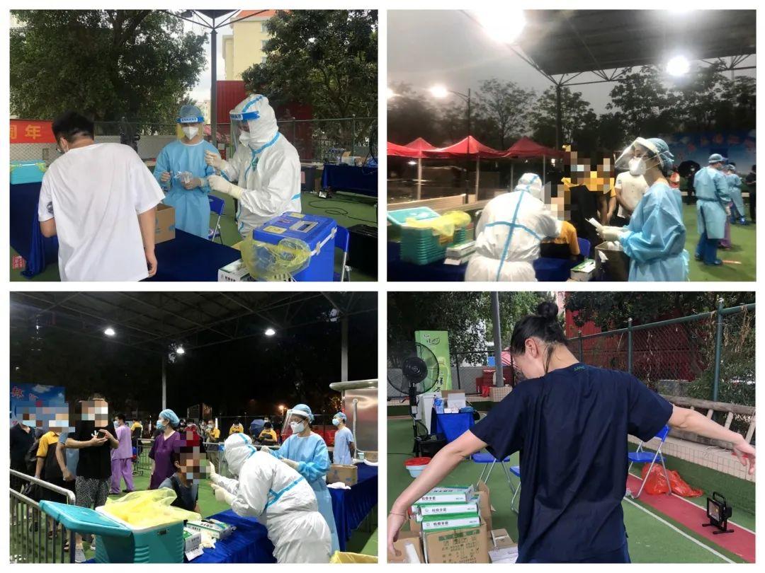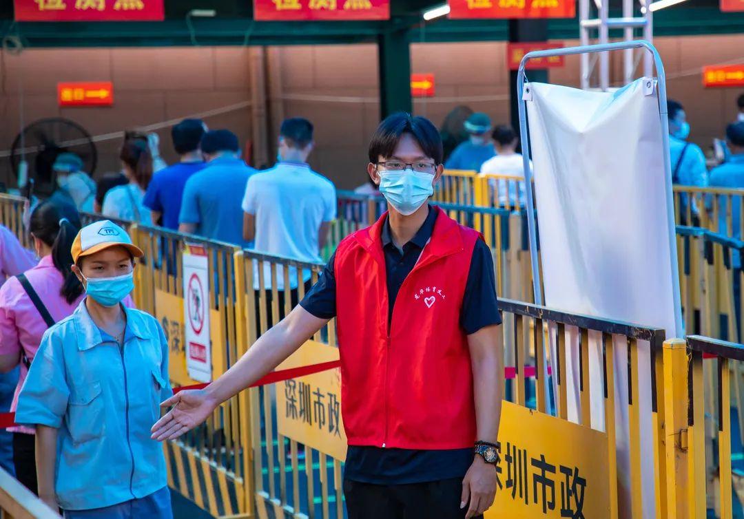 这两天最火热的不是六月的天而是疫情防控的工作场景连日来白衣战士、社区工作者、网格员、志愿者……迎着朝霞、顶着酷暑披着暮色、伴着星辰奔波于各街道、社区、校园开展核酸采样、情况筛查等工作城中村、小区人口密集富士康等大厂人员众多……龙华区采样难度可想而知当需要更多人力、更多支援时他们,一个个顶上了。为了早日从疫情手里赢回正常的生活他们通宵达旦地努力着日与夜的轮转他们用汗水守护这座城爱与暖的传递他们收获着感动与惊喜PART.16月6日晚上观澜街道桂花社区一座700多平方米的核酸检测凉棚连夜搭建起来物资是否到位。社区党委书记陈汉辉不敢掉以轻心连夜统筹防疫一线各项工作,废寝忘食直到喉咙沙哑讲不出话依旧坚守岗位100多位社区工作人员一直连轴转到次日早上7点白天依然坚守岗位指引居民进入规划有序的检测现场把疲惫留给自己,把周全送给大家夜深了龙华区民法公园核酸检测点白炽灯依然明亮这里有一群“守夜人”正默默坚守在各自的岗位上身穿红马甲的志愿者用沙哑的声音询问着每一位人员近段时间的行程手上的橡胶手套浸透了汗水他来来回回不断地提醒大家扫码登记夏日高温,酷暑难耐身穿厚厚的防