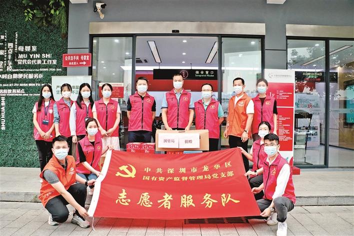 6月6日以来,国资国企除了派出干部全脱产支援社区抗疫之外,纷纷迅速组建志愿服务队伍,助力防疫工作:区国资局动员全体党员干部放弃节假日休息时间,深入大富社区各卡口点位支援抗疫;龙华投控集团党委集结60名志愿者赶赴民治街道民乐、大岭、龙塘三个社区协助开展核酸检测;龙华建设党委连夜组建一支由61名党员志愿者组成的服务队,前往观城社区协助开展核酸检测;龙华排水公司8名党员干部组成先锋小分队支援区交通部门,协助核查相关物流企业货运司机做核酸检测;龙华资本公司克服全公司仅有20余名员工的人力调配困难,派出10余名企业员工支援桔塘社区,送去一批空气消毒机等“黑科技”防疫设备,助力社区提升防疫效能……