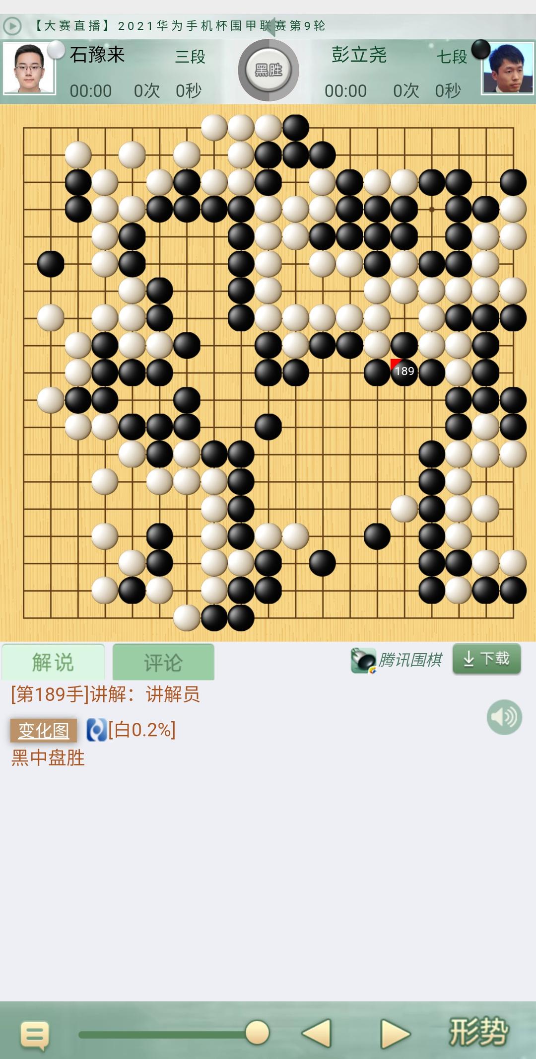 本轮,深圳龙华队小将石豫来继续出战,执白对阵彭立尧。开局白棋不错,进入中盘白棋大局不足,被黑在中央双方消长处连续行棋,局面被动。官子时白棋也失误多多,最终黑棋大胜。小石在本赛季初尝败绩。