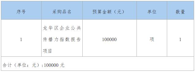根据《深圳经济特区政府采购条例》《深圳经济特区政府采购条例实施细则》和《深圳网上政府采购管理暂行办法》《中共深圳市龙华区委宣传部自行采购管理暂行规定》的有关规定,深圳市龙华区委宣传部就龙华区企业公共传播力指数报告项目,采用网上公开选取供应商提供服务的方式实施采购,欢迎符合资格的供应商参加。