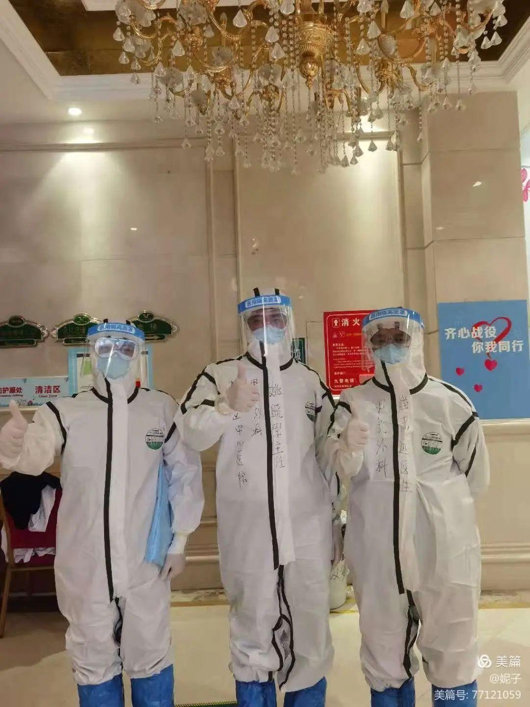 12月8日,姚晓军携带助手潘志远主治医生穿戴厚重防护装备对刘某开展手术。防护用品层层包裹,呼吸所产生的气体很快在护目镜上凝聚了雾气,增加了手术的难度。姚晓军让助手用上所有照明设备,找寻了一个最为光亮的角度,克服困难观察刘先生的脓肿并准确清洗切开引流,最终成功完成手术。术后,当姚晓军脱下防护服后大家才发现其工作服已被汗水浸湿。窄窄的房间,隔离着疫情却不曾隔离爱和责任。为了加速伤口愈合和防止感染,姚晓军每天为隔离人员换药并仔细观察伤口情况。