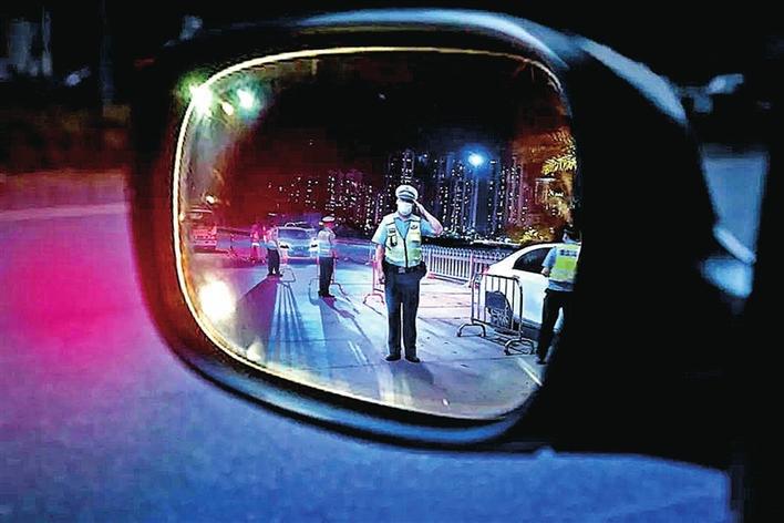 当日执勤的交警是龙华交警大队民治中队民警徐超,他看到车内的司机穿着志愿者马甲,立刻意识到这位驾驶者应该是刚刚结束一天的抗疫工作,回忆起这些天自己所在社区的抗疫人员冒着酷暑挨家挨户敲门请居民做核酸采样,他的情绪瞬间难以抑制,检测后便对着车辆的方向,敬礼致敬。“我能做的也不多,这样也算是向‘逆行者’表达一份敬意吧。”徐超表示。