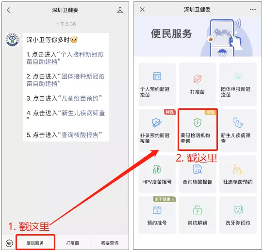 深圳人码“黄”了,咋“绿”回来?赶紧到这55个点测核酸,名单已更新!“红暴无伤大雅,黄码寸步难行”。 深圳人最近都忙着上演一部史诗级巨作——《我为“绿码”狂》。 但还是有不少人一觉醒来后,发现自己“黄了”!在深圳,健康码“黄了”,要怎么“绿”回来? 很简单,只要到55个指定的点(已更新)免费测一次核酸,结果是阴性并且已经上传到系统通过审核后,“黄码”就能自动“绿”回来! 01 “黄码”人到哪测核酸最近? 1.关注并进入“深圳卫健委”微信公众号; 2.点“便民服务”,戳中间的“黄码检测机构查询”; 3.按提示识别二维码跳到小程序,就能直接看到当下离你最近的点。 *黄码检测无需预约,请直接在服务时间内去指定机构现场排队检测。 02 “黄码”检测机构名单 最新出炉 这两类“黄码”人不用掏钱测核酸 特定时段在【深圳机场】呆过的 6月10日CA868国际航班入境以来到6月18日发现朱某、萧某病例期间, 在深圳机场停留1小时以上的人员,包括出发或抵达的旅客和接送机人员,以及机场的工作和服务保障人员; 和确诊病例等人“擦肩而过”的 在确诊病例、密接者和次密接者的居住地、工作地及活动轨迹中,曾经在对应的风险时段停留过的人员。 根据《粤康码判定和转码规则》,在本次疫情处置过程中,深圳结合Delta变异株的特点和风险,通过大数据分析和流调专班研判,上面两类人群已判定为黄码,想要“变绿”,可以到指定医院免费测核酸。 离深出省的“黄码”人 该怎么办? 2个解决办法—— 在当地检测后等待“转绿” 可根据当地防疫政策,在24小时内到当地指定的核酸检测机构进行核酸检测,结果会经当地相关部门上传到国家平台,广东省将定期查询国家平台,在获取核酸检测阴性结果后第一时间按规程转绿码。 由于各省核酸数据需上传至国家平台,以及广东省从国家平台查询下载数据,需要一个过程,请耐心等待,待健康码转为绿色后,再行返深。 紧急回深可拿着纸质报告备用 如果有急事要马上赶回深圳,可到当地有资质的机构做核酸检测,持48小时内核酸检测阴性的纸质证明以备不时之需。 需要等核酸检测结果上传至粤康码、“深i您”健康码。 为啥有些人核酸结果为阴性 “黄码”还没变绿? 因为健康码转码操作涉及省、市核酸检测数据的传输和健康码判定过程,中间会有延时。 如果已经查询到核酸结果为阴性,但健康码还未转绿,建议耐心等待一段时间再查询。 来源:深圳卫健委