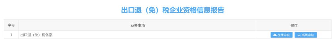 进入电子税务局“我要办税→出口退税管理→出口退(免)税企业资格信息报告→出口退(免)税备案”(见下图),点击“在线申报”后,按以下流程操作: