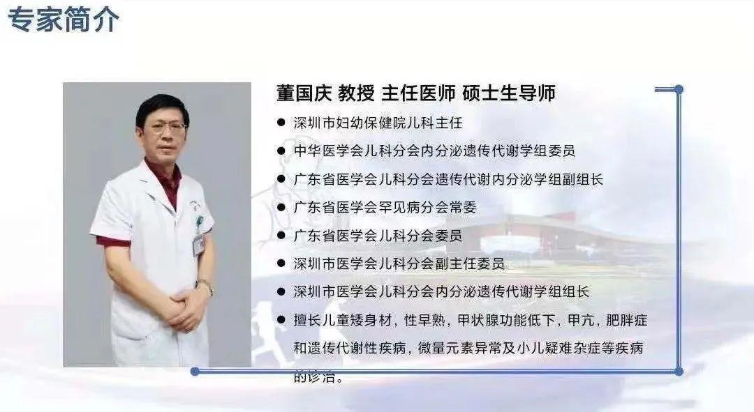 深圳市妇幼保健院儿科主任董国庆教授也会不定期来到龙华区妇幼保健院儿童内分泌门诊。
