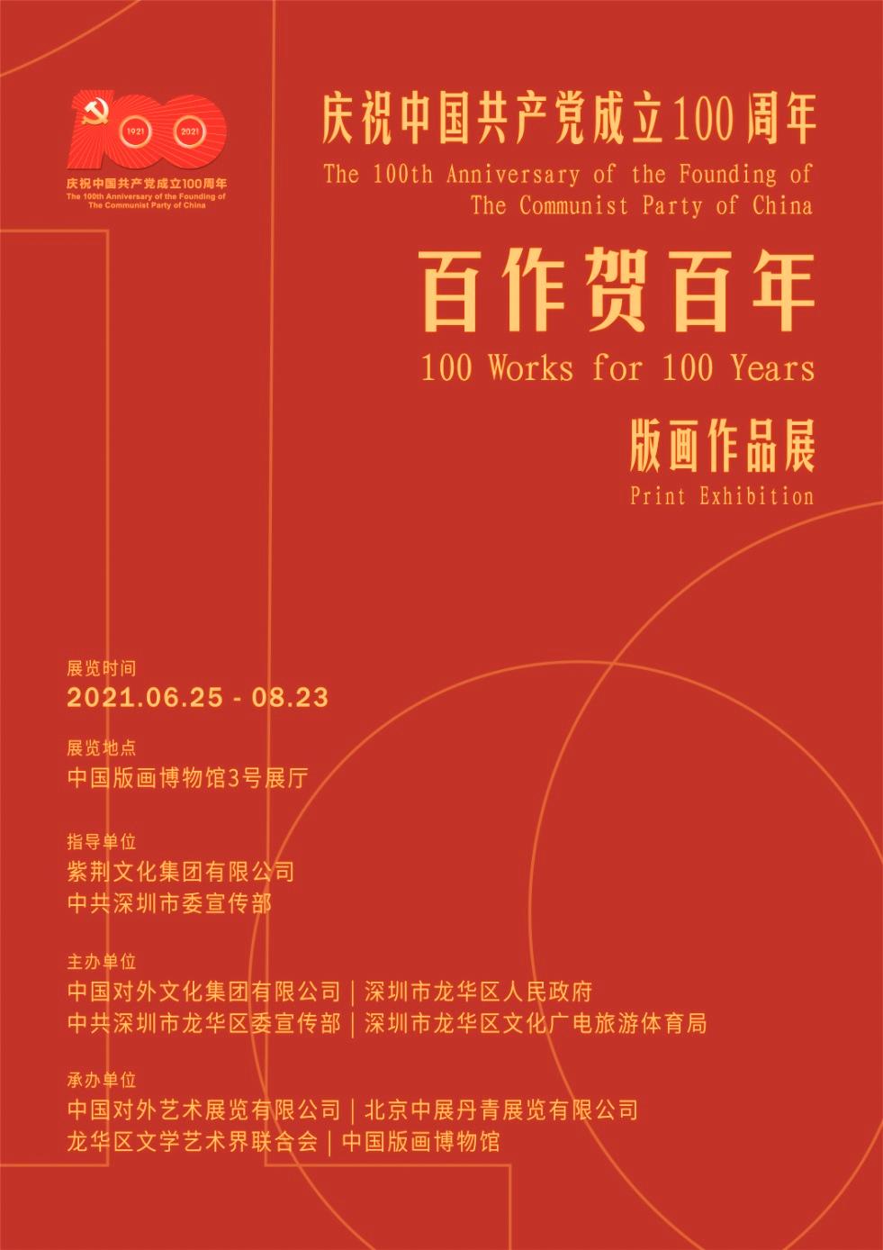 此次展览紧紧围绕建党百年的主题,分为"星星之火""峥嵘岁月""改天换地""精神永恒""奋进时代"五个板块,甄选极具学术价值、艺术价值、历史价值的版画精品100件,涵盖各个时期版画名家作品和少部分当代优秀青年版画艺术家的代表作品。这些作品不仅再现中国共产党顽强奋斗,带领中国从苦难走向辉煌的恢宏画卷,抒写中国共产党领导人民开天辟地、改天换地的经典篇章,也让当代中国人在中国共产党百年征途的滚滚历史洪流中拥有跨越时代的共鸣,并从中获得滋养,激发灵感,在习近平新时代中国特色社会主义建设中铸就新的辉煌。