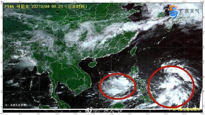 此前,广东气象台7月4日发布的台风预警信号显示,位于西北太平洋的南海和菲律宾以东洋面上有两个热带扰动正在快速发展,形成了双台风共舞的局面。在副高的不断增强和北抬的作用下,这两个台风胚胎有可能靠近或登陆我国华南沿海地区,并给华南地区带来台风的影响。