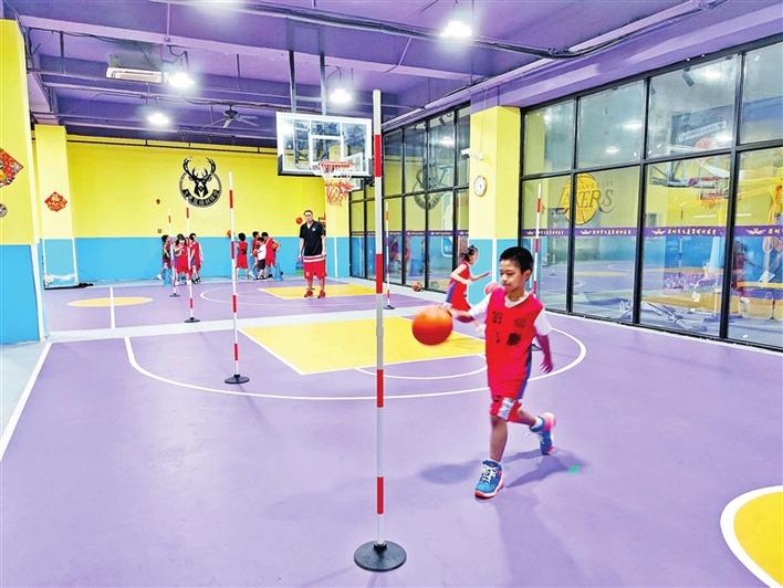 学生在龙华一培训机构参加暑期篮球训练。