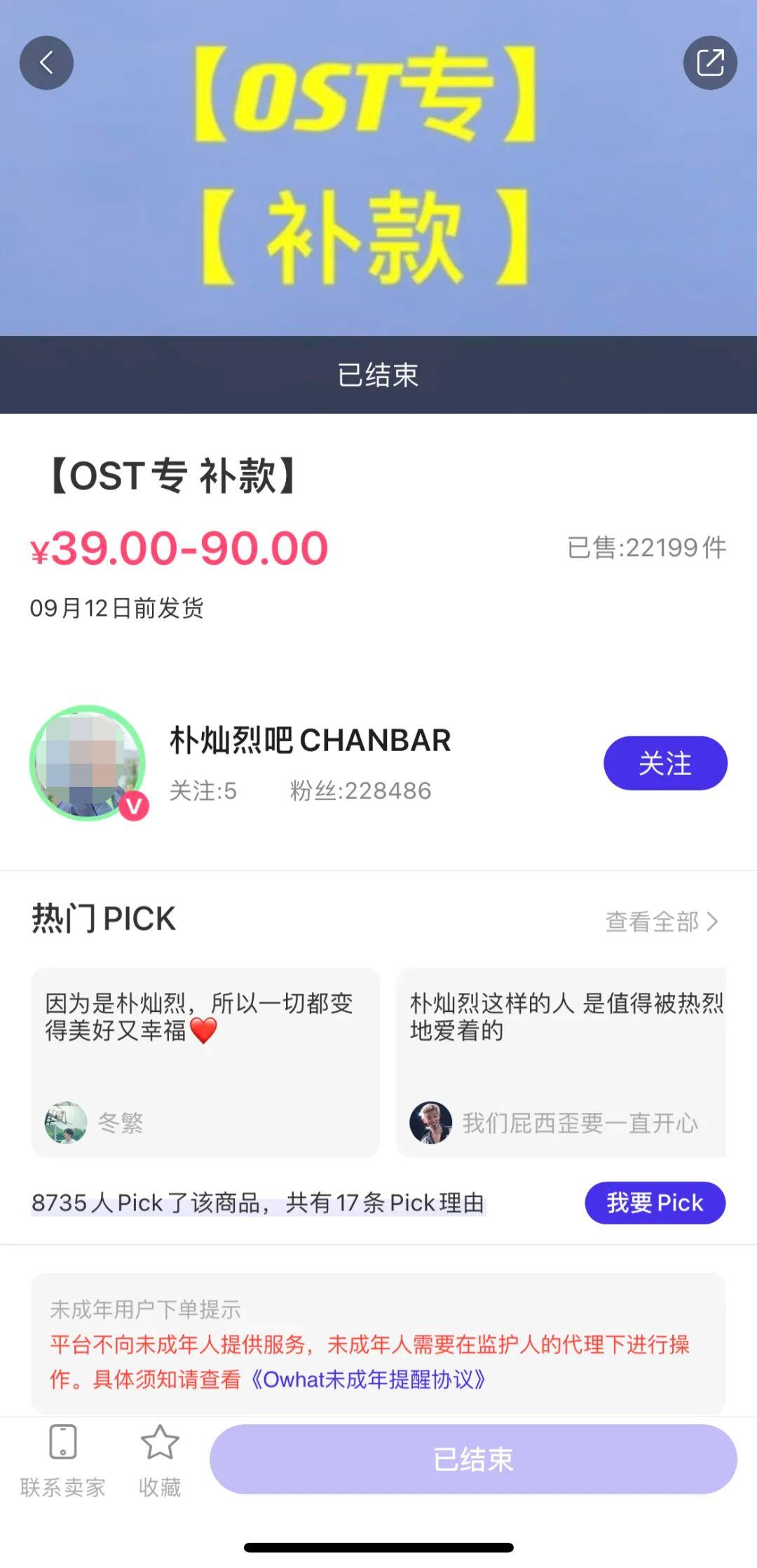 在粉丝交易平台o!what上,记者看到“朴灿烈吧CHANBAR”的店铺有数百件商品,销量最高的超过150万件。在最新的商品中,“OST专补款”销量较高,超过2万件,某杂志五月刊销量也达1.74万件,“补邮抽抽乐”销量超过3.6万件。由此预估,在此事件中,涉及粉丝数量要达到数万人。而根据粉丝反映的情况,其中有不少还是未成年人。