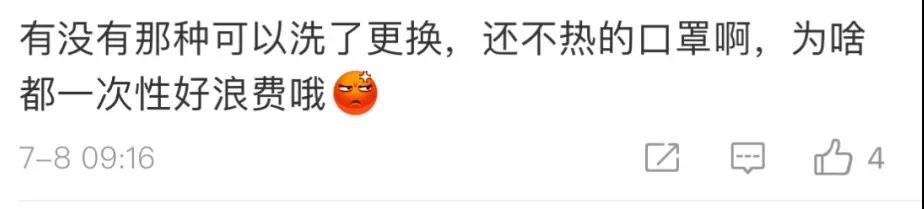 还有网友表示,夏天温度高,有没有自带清凉功能的口罩?