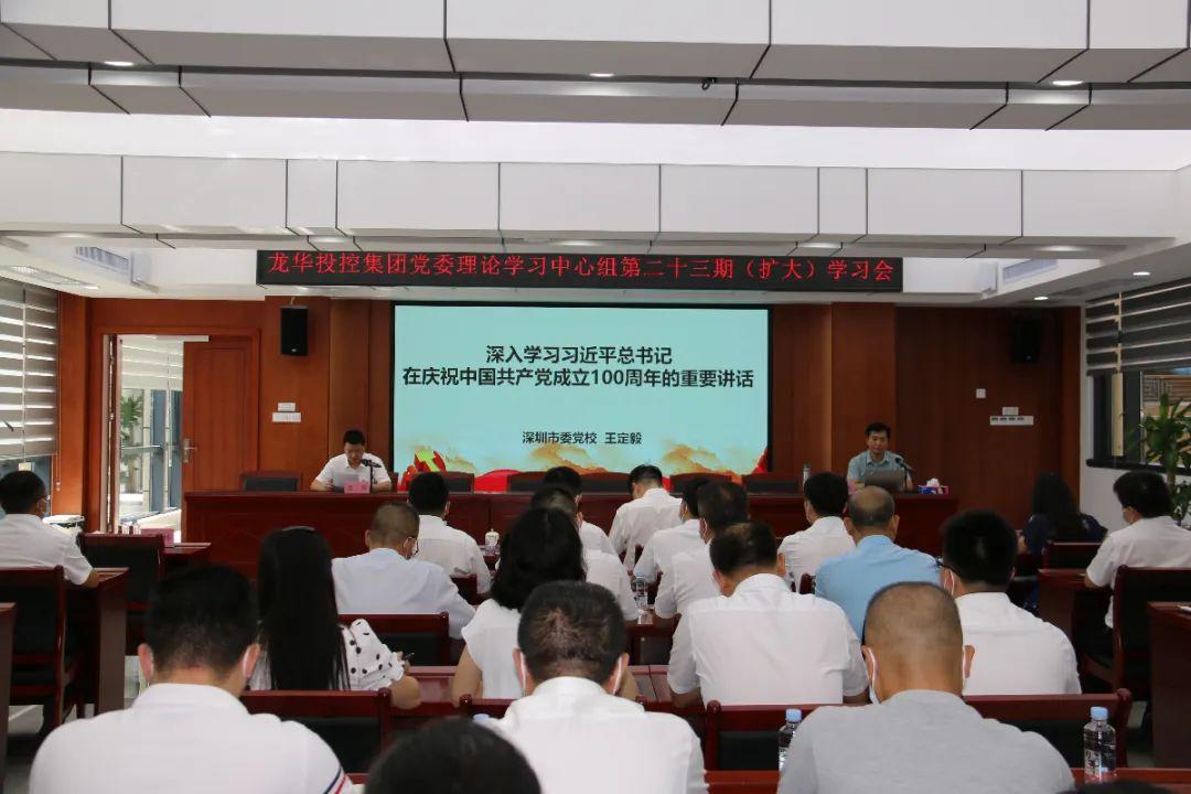 为深入学习领会并贯彻落实习近平总书记在庆祝中国共产党成立100周年大会上的重要讲话,7月15日上午,龙华投控集团召开党委理论学习中心组学习会议暨党史学习教育集中学习会。会议邀请深圳市委党校习近平新时代中国特色社会主义思想研究中心副主任、市委宣讲团成员王定毅同志围绕“学习贯彻习近平总书记在庆祝中国共产党成立100周年大会上的重要讲话精神”作专题辅导。