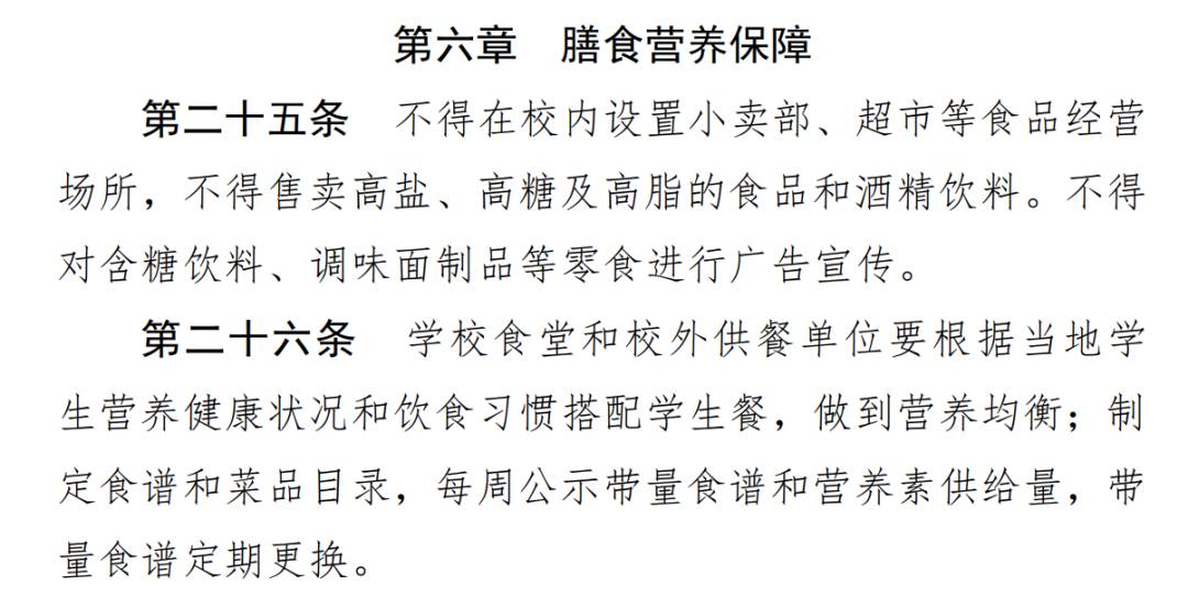 一、适应儿童青少年生长发育需要,关注生命全周期、健康全过程,从食品安全、合理膳食、科学运动、口腔健康、视力保护和心理健康等多个维度提出规范化要求,以全面促进学生健康;
