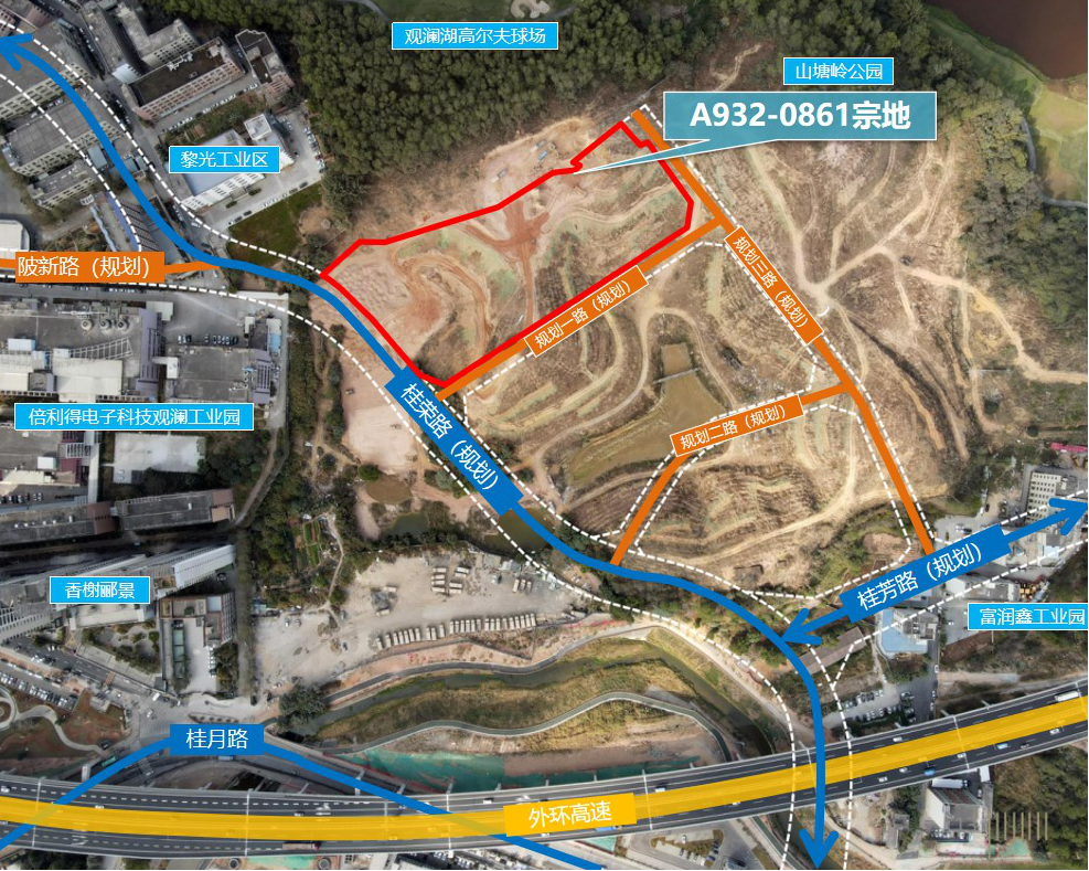 A932-0861宗地位于观澜街道,用地功能为普通工业用地,用地面积17476.28平方米。规定容积率≤4.2,总建筑面积73390平方米,其中厂房57970平方米,宿舍11000平方米,食堂2200平方米,商业500平方米,物业服务用房100平方米,公共厕所100平方米,环卫工人休息站20平方米,公交首末站1500平方米。