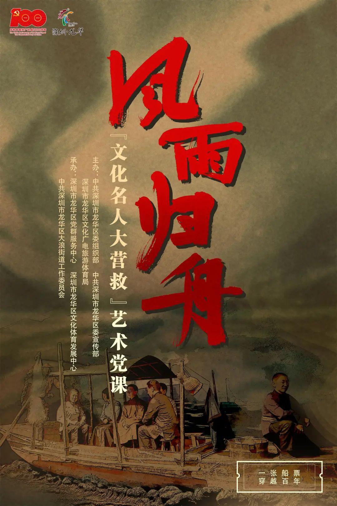 此外,为庆祝中国共产党成立100周年,区文化广电旅游体育局精心策划了一系列活动,其中重点创作“文化名人大营救”艺术党课《风雨归舟》,将于7月25日正式首演。具体活动信息,请持续关注“龙华文体云”公众号。