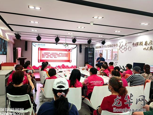 读特客户端·深圳新闻网讯 (记者 陶倩 通讯员 周淑妮 李小玲)为增强人们对社会主义核心价值观的认同和理解,进一步培育和践行社会主义核心价值观,传承文明家风家训,7月28日,景龙社区党委开展“弘扬好家风,传承好家训”社会主义核心价值观进社区活动之社区文明提升志愿服务培训。