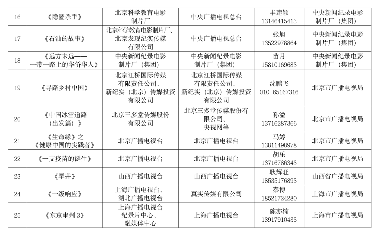 推优片目版权信息可在国家广播电视总局政府网站(http://www.nrta.gov.cn)公告区中查询,同时可在中国纪录片网(http://www.docuchina.cn)查询。