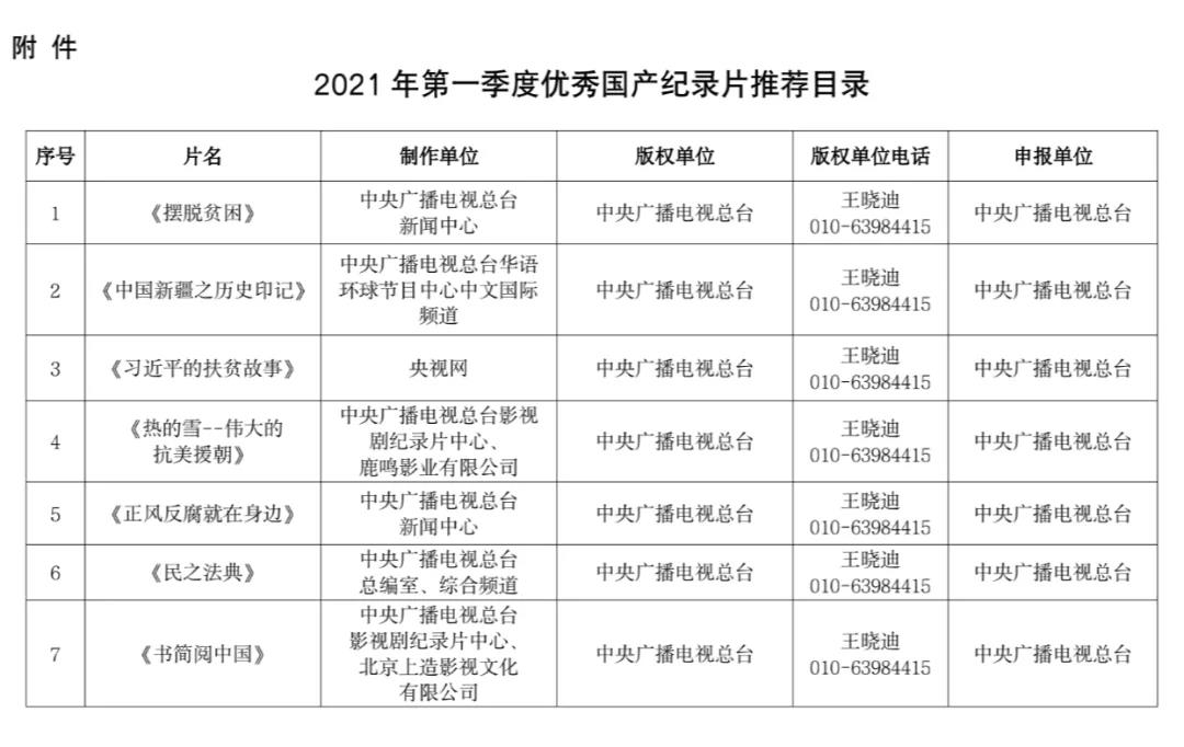 8月2日,国家广播电视总局发布《国家广播电视总局办公厅关于推荐2021年第一季度优秀国产纪录片的通知》(以下简称《通知》)。