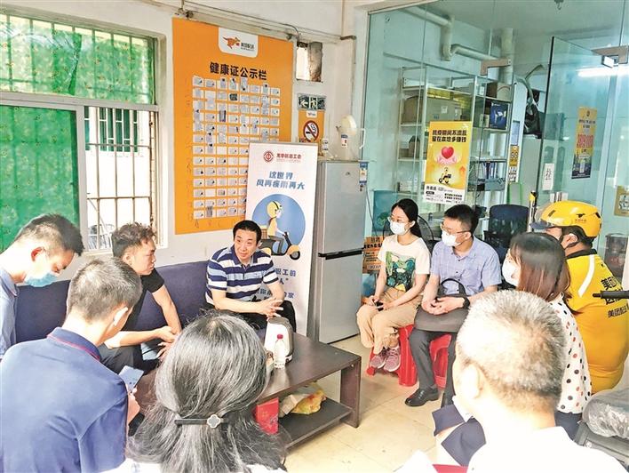 龙华新闻讯(记者 王雪敏 通讯员 雷韵茜 梁淑萍/文 记者 蔡维泽/图)随着新技术、新产业、新业态、新模式经济蓬勃发展,灵活就业群体正在兴起。这些新就业形态劳动者的正当权益如何维护?困难如何解决?心声如何听取?民治街道根据辖区实际,在全总机关广东蹲点工作组的指导下,按照省、市、区总工会的具体部署,积极推动以美团骑手为代表的新就业形态劳动者加入工会。经过两个多月的扎实工作,目前,该街道辖区7个美团站点的633名骑手全部入会,骑手入会率和工会小组组建率均达到100%。